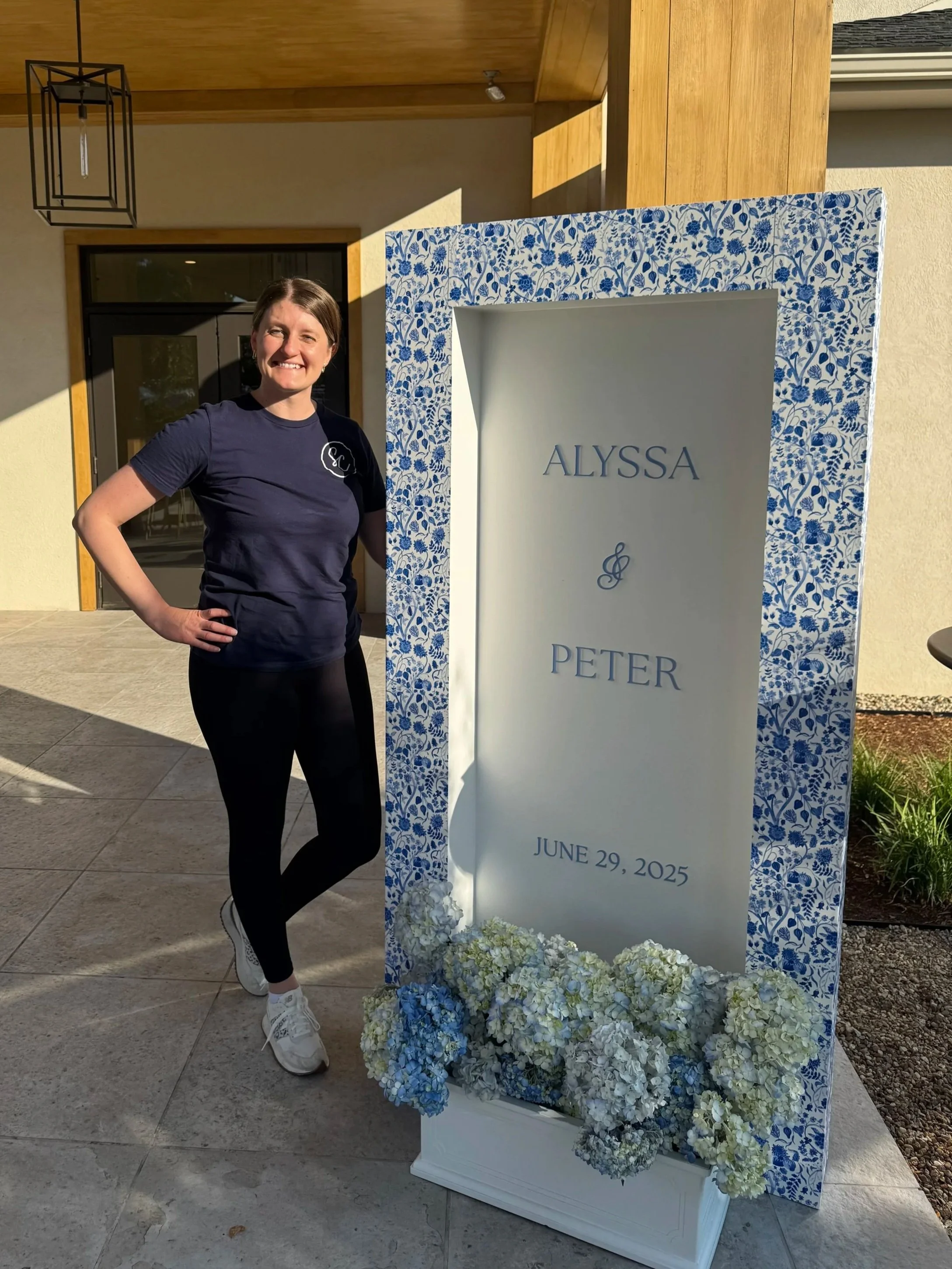 Couples get to enjoy being engaged and living their lives - while we work behind the scenes spending tens of hours designing pieces, sourcing materials, building displays, weeding and applying vinyl, securely packaging everything, delivering and setting up on the big day, and breaking down everything at the end of the night. Couples do not have to lift a finger - we are there to guide couples through the process and do the heavy lifting (literally and figuratively).
